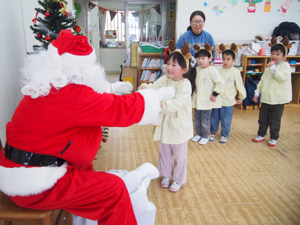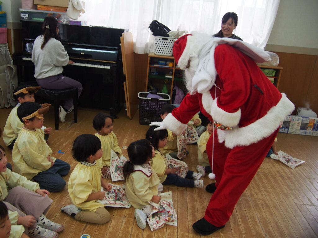 大歓声の中、サンタさんから一人一人プレゼントを貰い大喜び🎁✨