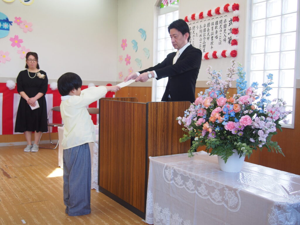 園長先生から一人ひとり卒園証書を受け取りました!元気に返事を姿に大きな成長を感じました😊