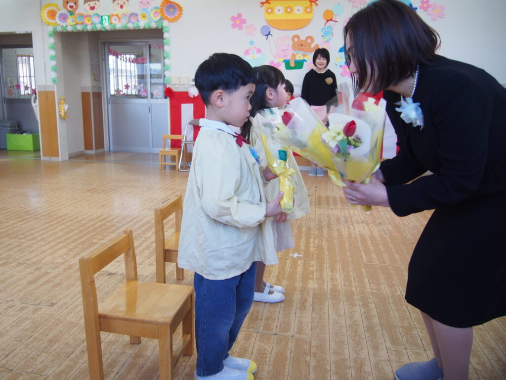 先生達から花束のプレゼントです🌷お礼もしっかり言えました♬